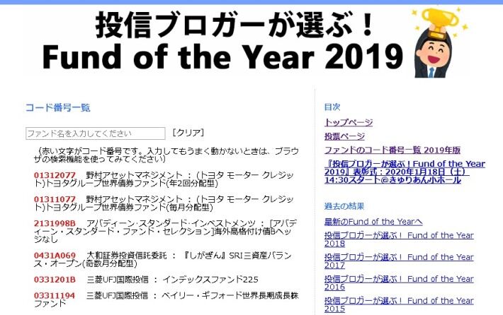 そういえば完全に忘れていましたが、「投信ブロガーが選ぶ!Fund of the Year 2019(FOY2019)」の結果が発表されていたんですね。