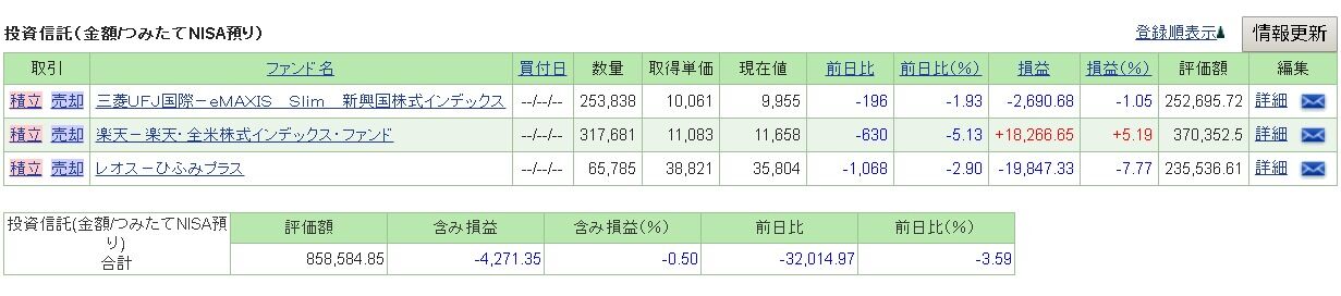 全面的に色々下がってきていますが、含み損を見ても動揺はありませんでした。歓喜するようなことではないかもしれませんが、ドルコスト平均法で積み立てている以上、たまには下落しないとリターンが振るわないからです。