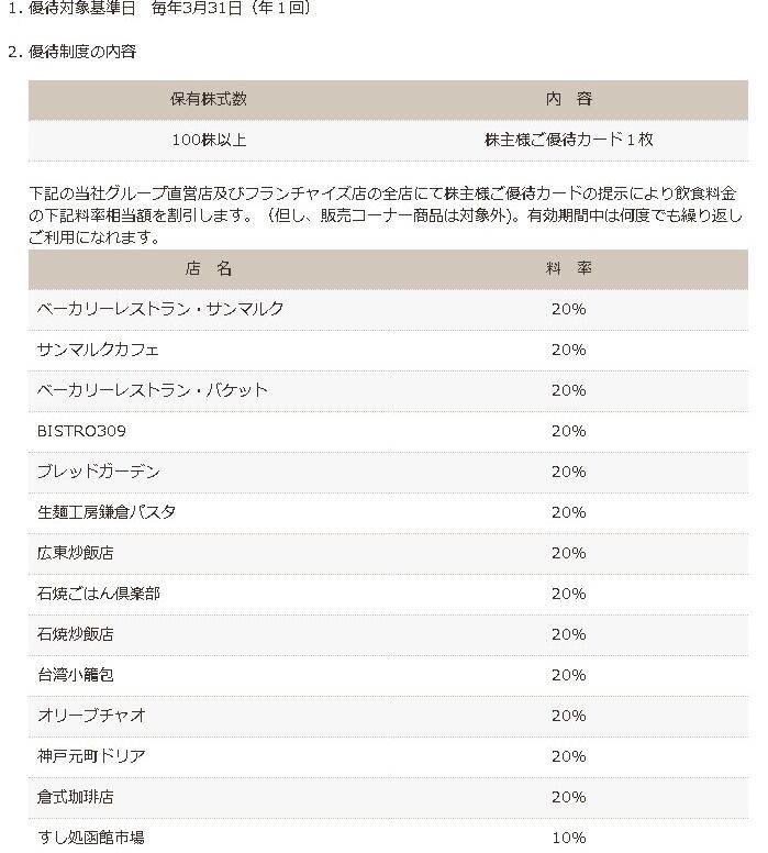 サンマルクHDの株主優待は、保有株式数に限らず同じとなります。