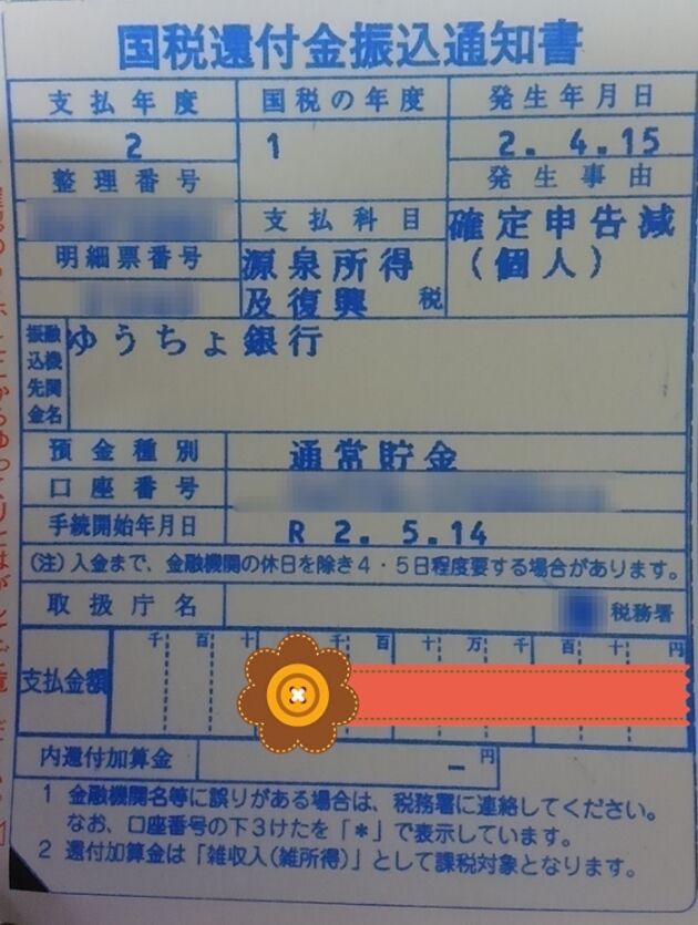 その際に還付金が発生した訳ですが、先日還付金が郵貯口座に振り込まれました。