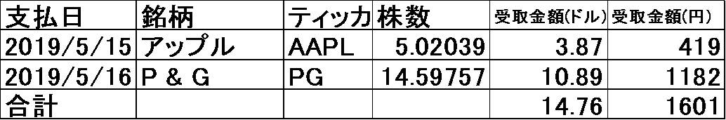 いやぁ、私の保有銘柄では5月は特に少ないですね。